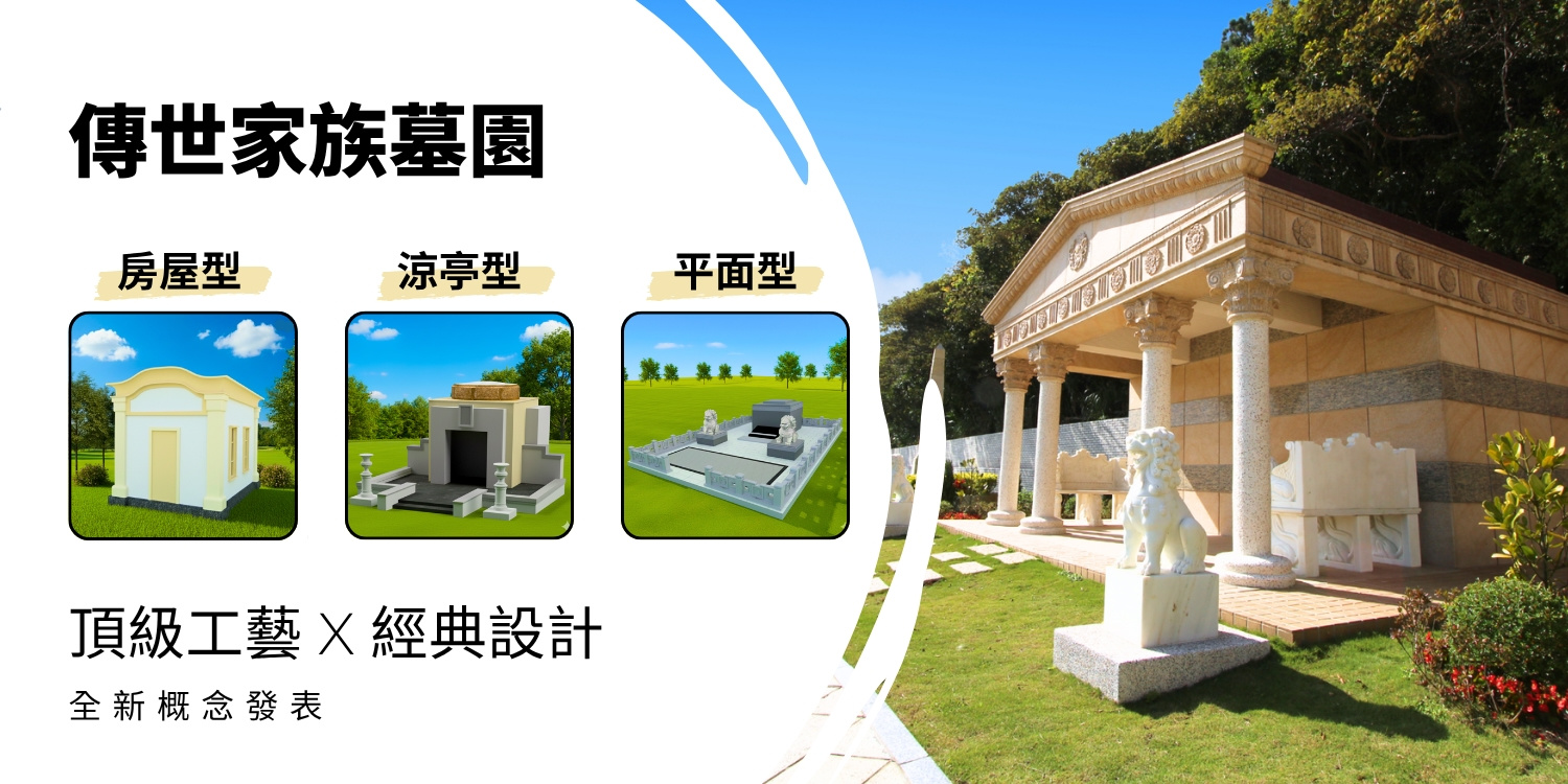 傳世家族墓園以各式經典建築、專屬紀念碑、藝術雕刻或宗教信仰為主題所精心設計。沒有了圍籬,它使我們的心無比寬廣,也彰顯了家族不凡的氣度。