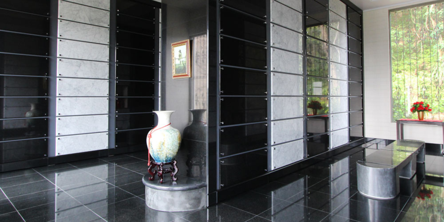 萬福苑以獨棟豪宅規格打造出一個寬敞舒適、簡約大器的室內納骨空間,單棟僅 198 席位,全石材內裝,並提供各式銅件打造專屬面板。在這裡,您獲得一個機會去擁抱最純粹的思念。在這裡,寧靜與享受不再是遙不可及的夢想。