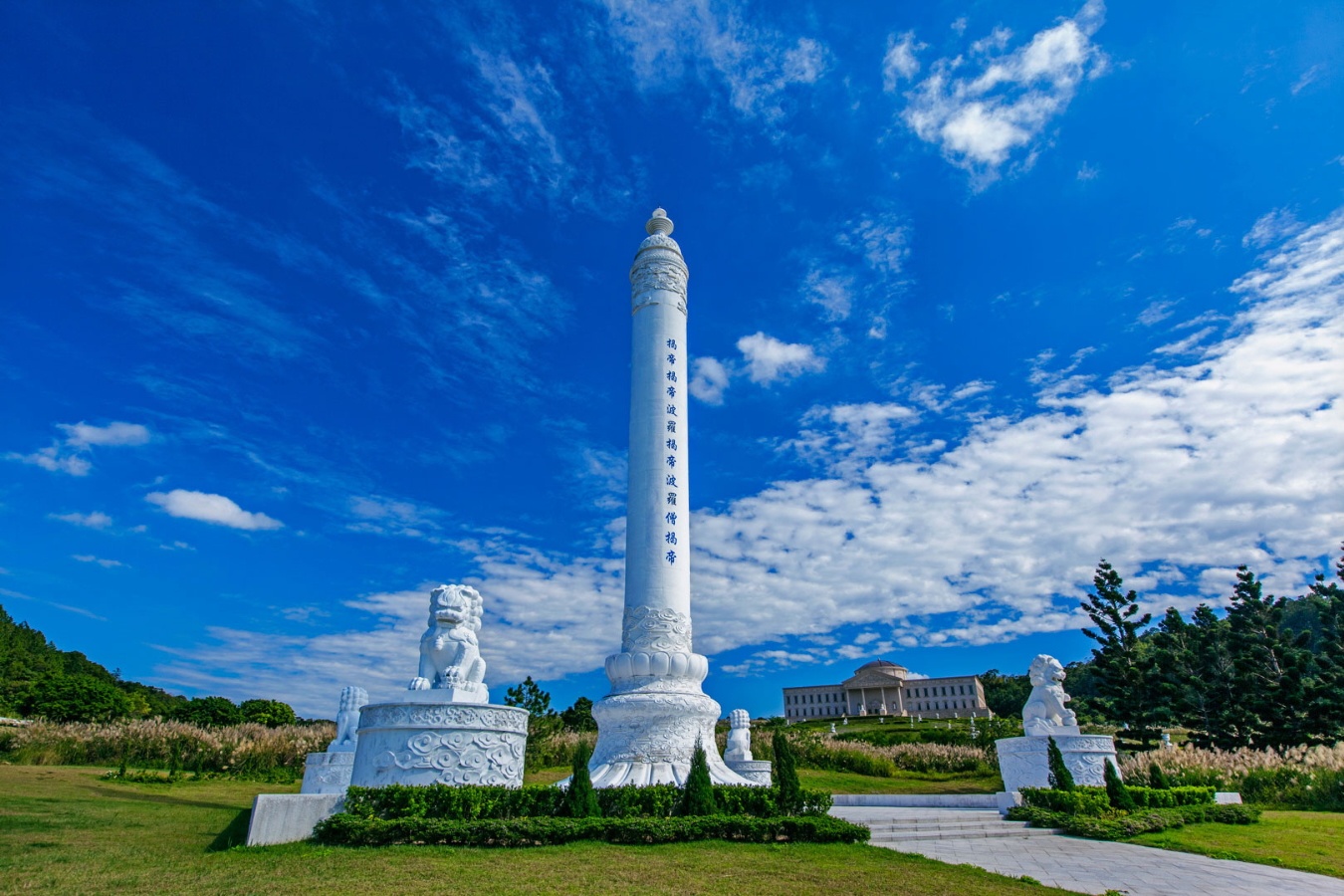 心經柱猶如天陵的精神指標。莊嚴寧靜的閃耀在每天的日升日落之下。